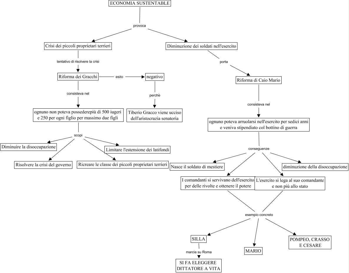 Este Cmap, tiene información relacionada con: crisi_Roma_IIIsec_aC_Sciamanna, I comandanti si servivano dell'esercito per delle rivolte e ottenere il potere esempio concreto POMPEO, CRASSO E CESARE, ognuno non poteva possederepiù di 500 iugeri e 250 per ogni figlio per massimo due figli scopi Limitare l'estensione dei latifondi, negativo perchè Tiberio Gracco viene ucciso dell'aristocrazia senatoria, Diminuzione dei soldati nell'esercito porta Riforma di Caio Mario, ognuno poteva arruolarsi nell'esercito per sedici anni e veniva stipendiato col bottino di guerra conseguenze I comandanti si servivano dell'esercito per delle rivolte e ottenere il potere, L'esercito si lega al suo comandante e non più allo stato esempio concreto MARIO, ognuno poteva arruolarsi nell'esercito per sedici anni e veniva stipendiato col bottino di guerra conseguenze diminuzione della disoccupazione, ECONOMIA SUSTENTABLE provoca Crisi dei piccoli proprietari terrieri, I comandanti si servivano dell'esercito per delle rivolte e ottenere il potere esempio concreto MARIO, L'esercito si lega al suo comandante e non più allo stato esempio concreto POMPEO, CRASSO E CESARE, ognuno non poteva possederepiù di 500 iugeri e 250 per ogni figlio per massimo due figli scopi Risolvere la crisi del governo, ognuno poteva arruolarsi nell'esercito per sedici anni e veniva stipendiato col bottino di guerra conseguenze L'esercito si lega al suo comandante e non più allo stato, Riforma dei Gracchi consisteva nel ognuno non poteva possederepiù di 500 iugeri e 250 per ogni figlio per massimo due figli, ognuno non poteva possederepiù di 500 iugeri e 250 per ogni figlio per massimo due figli scopi Ricreare le classe dei piccoli proprietari terrieri, Riforma di Caio Mario consisteva nel ognuno poteva arruolarsi nell'esercito per sedici anni e veniva stipendiato col bottino di guerra, Crisi dei piccoli proprietari terrieri tentativo di risolvere la crisi Riforma dei Gracchi, ognuno poteva arruolarsi nell'esercito per sedici anni e veniva stipendiato col bottino di guerra conseguenze Nasce il soldato di mestiere, ognuno non poteva possederepiù di 500 iugeri e 250 per ogni figlio per massimo due figli scopi Diminuire la disoccupazione, L'esercito si lega al suo comandante e non più allo stato esempio concreto SILLA, Riforma dei Gracchi esito negativo