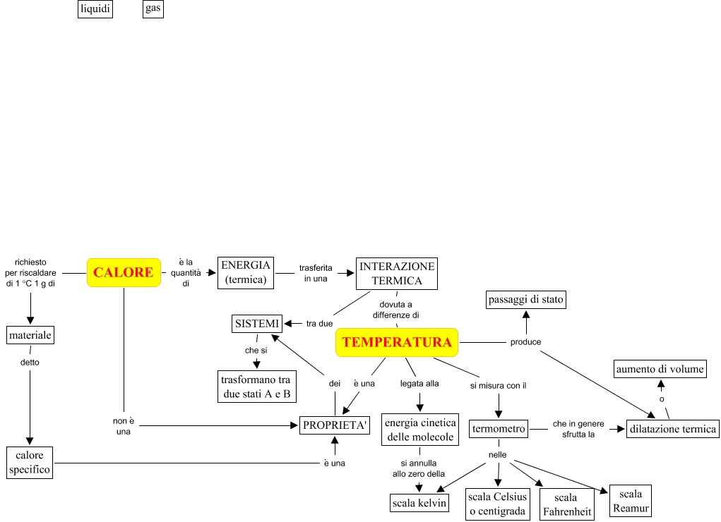 Questa Cmap, creata con IHMC CmapTools, contiene informazioni relative a: CALORE E TEMPERATURA, CALORE richiesto per riscaldare di 1 °C 1 g di materiale, energia cinetica delle molecole si annulla allo zero della scala kelvin, dilatazione termica o aumento di volume, TEMPERATURA legata alla energia cinetica delle molecole, termometro nelle scala Reamur, termometro nelle scala Celsius o centigrada, INTERAZIONE TERMICA tra due SISTEMI, termometro nelle scala kelvin, termometro nelle scala Fahrenheit, PROPRIETA' dei SISTEMI, INTERAZIONE TERMICA dovuta a differenze di TEMPERATURA, TEMPERATURA produce passaggi di stato, ENERGIA (termica) trasferita in una INTERAZIONE TERMICA, TEMPERATURA è una PROPRIETA', calore specifico è una PROPRIETA', SISTEMI che si trasformano tra due stati A e B, TEMPERATURA produce dilatazione termica, CALORE non è una PROPRIETA', termometro che in genere sfrutta la dilatazione termica, CALORE è la quantità di ENERGIA (termica)