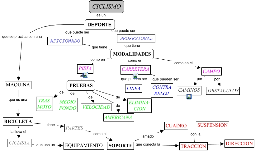 Este Cmap, tiene información relacionada con: ALHAMA-CICLISMO, DEPORTE que puede ser PROFESIONAL, CARRETERA que pueden ser LINEA, CAMPO por CAMINOS, SOPORTE que conecta la TRACCION, PRUEBAS de TRAS MOTO, MODALIDADES como en el CAMPO, CARRETERA que pueden ser CONTRA RELOJ, PARTES como el SOPORTE, CAMPO por OBSTACULOS, PRUEBAS de VELOCIDAD, MODALIDADES como en PISTA, TRACCION con la SUSPENSION, DEPORTE que se practica con una MAQUINA, CICLISTA que usa un EQUIPAMIENTO, TRACCION con la DIRECCION, MAQUINA que es una BICICLETA, SOPORTE llamado CUADRO, PRUEBAS de AMERICANA, PISTA en PRUEBAS, BICICLETA tiene PARTES