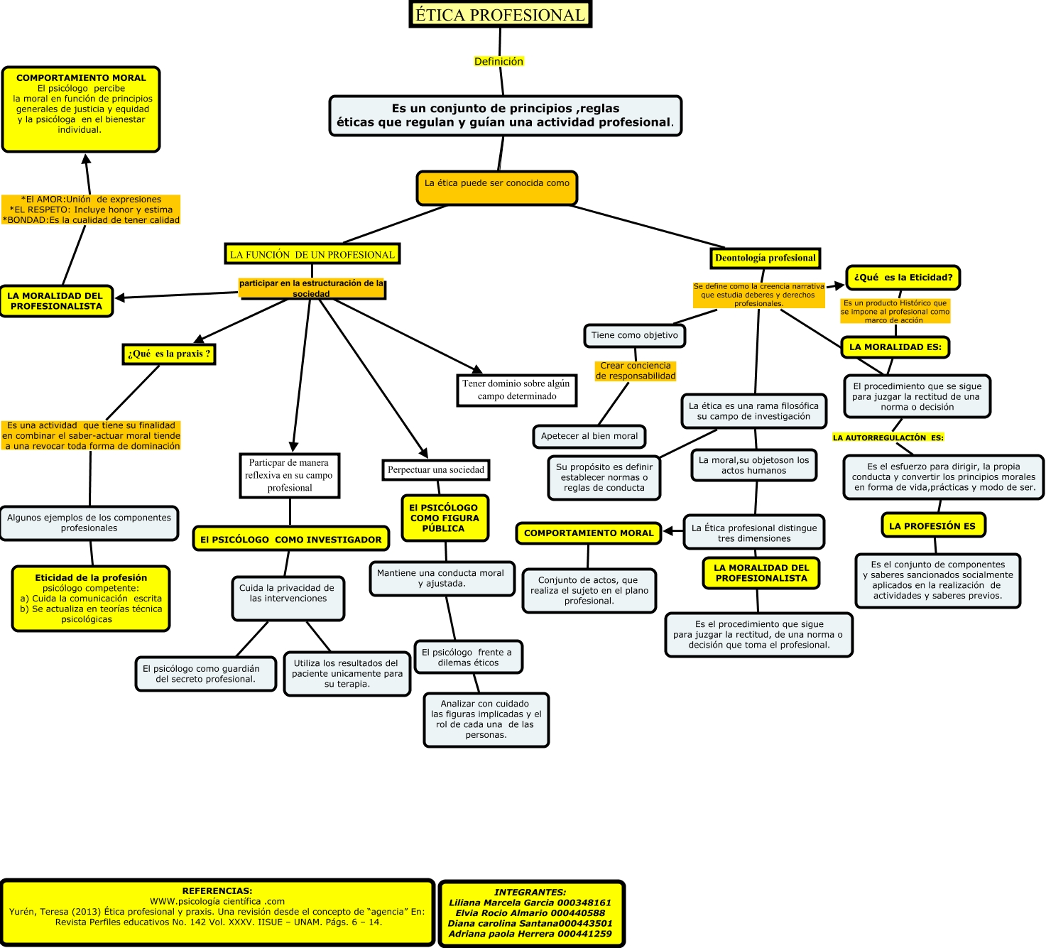 Este Cmap, tiene información relacionada con: MOVIMIENTOS MIGRATORIOS, LA FUNCIÓN DE UN PROFESIONAL participar en la estructuración de la sociedad LA MORALIDAD DEL PROFESIONALISTA, ÉTICA PROFESIONAL Definición Es un conjunto de principios ,reglas éticas que regulan y guían una actividad profesional., Cuida la privacidad de las intervenciones ???? Utiliza los resultados del paciente unicamente para su terapia., LA FUNCIÓN DE UN PROFESIONAL participar en la estructuración de la sociedad Tener dominio sobre algún campo determinado, LA FUNCIÓN DE UN PROFESIONAL participar en la estructuración de la sociedad ¿Qué es la praxis ?, Particpar de manera reflexiva en su campo profesional ???? El PSICÓLOGO COMO INVESTIGADOR, Es el esfuerzo para dirigir, la propia conducta y convertir los principios morales en forma de vida,prácticas y modo de ser. ???? LA PROFESIÓN ES, La ética es una rama filosófica su campo de investigación ???? La Ética profesional distingue tres dimensiones, El PSICÓLOGO COMO FIGURA PÚBLICA ???? Mantiene una conducta moral y ajustada., Deontología profesional Se define como la creencia narrativa que estudia deberes y derechos profesionales. Tiene como objetivo, LA FUNCIÓN DE UN PROFESIONAL participar en la estructuración de la sociedad Particpar de manera reflexiva en su campo profesional, Perpectuar una sociedad ???? El PSICÓLOGO COMO FIGURA PÚBLICA, COMPORTAMIENTO MORAL ???? Conjunto de actos, que realiza el sujeto en el plano profesional., La Ética profesional distingue tres dimensiones ???? COMPORTAMIENTO MORAL, Es un conjunto de principios ,reglas éticas que regulan y guían una actividad profesional. Definido por dos operaciones Deontología profesional, El PSICÓLOGO COMO INVESTIGADOR ???? Cuida la privacidad de las intervenciones, Algunos ejemplos de los componentes profesionales ???? Eticidad de la profesión psicólogo competente: a) Cuida la comunicación escrita b) Se actualiza en teorías técnica psicológicas, LA PROFESIÓN ES ???? Es el conjunto de componentes y saberes sancionados socialmente aplicados en la realización de actividades y saberes previos., Deontología profesional Se define como la creencia narrativa que estudia deberes y derechos profesionales. La ética es una rama filosófica su campo de investigación, Deontología profesional Se define como la creencia narrativa que estudia deberes y derechos profesionales. ¿Qué es la Eticidad?