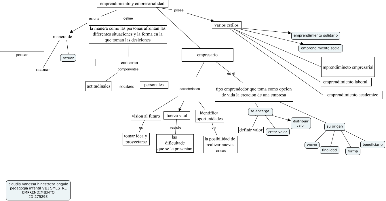 Este Cmap, tiene información relacionada con: Cristianismo, varios estilos ???? emprendimiento solidario, emprendimiento y empresarialidad define la manera como las personas afrontan las diferentes situaciones y la forma en la que toman las desiciones, emprendimiento y empresarialidad es una manera de, su origen ???? finalidad, empresario caracteristica fuerza vital, la manera como las personas afrontan las diferentes situaciones y la forma en la que toman las desiciones componentes actitudinales, su origen ???? causa, tipo emprendedor que toma como opcion de vida la creacion de una empresa ???? se encarga, varios estilos ???? emprendimiento academico, se encarga de crear valor, emprendimiento y empresarialidad ???? empresario, la manera como las personas afrontan las diferentes situaciones y la forma en la que toman las desiciones componentes encierran, varios estilos ???? mprendimineto empresarial, varios estilos ???? emprendimiento laboral., su origen ???? forma, emprendimiento y empresarialidad define la manera como las personas afrontan las diferentes situaciones y la forma en la que toman las desiciones, empresario es el tipo emprendedor que toma como opcion de vida la creacion de una empresa, empresario caracteristica vision al futuro, manera de y actuar, empresario caracteristica identifiica oportunidades