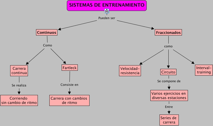 This Concept Map, created with IHMC CmapTools, has information related to: Entrenamiento de resitencia, Fraccionados como Interval- training, Continuos Como Carrera continua, Fraccionados como Circuito, Fraccionados como Velocidad- resistencia, Varios ejercicios en diversas estaciones Entre Series de carrera, Fartleck Consiste en Carrera con cambios de ritmo, Continuos Como Fartleck, SISTEMAS DE ENTRENAMIENTO Pueden ser Continuos, Carrera continua Se realiza Corriendo sin cambio de ritmo, Circuito Se compone de Varios ejercicios en diversas estaciones, SISTEMAS DE ENTRENAMIENTO Pueden ser Fraccionados