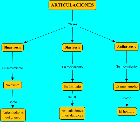 Este Cmap, tiene información relacionada con: Articulaciones, No existe Como Articulaciones del craneo, ARTICULACIONES Clases Diartrosis, ARTICULACIONES Clases Anfiartrosis, Anfiartrosis Su movimiento Es muy amplio, Es muy amplio Como El hombro, Diartrosis Su movimiento Es limitado, Sinartrosis Su movimiento No existe, ARTICULACIONES Clases Sinartrosis, Es limitado como Articulaciones interfalangicas