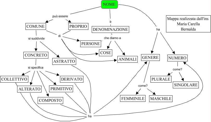 Questa Cmap, creata con IHMC CmapTools, contiene informazioni relative a: IL NOME, COMUNE di ANIMALI, PROPRIO di ANIMALI, DERIVATO ha NUMERO, DENOMINAZIONE che diamo a COSE, CONCRETO si specifica ALTERATO, CONCRETO si specifica COMPOSTO, COLLETTIVO ha NUMERO, COMUNE di COSE, COMUNE si suddivide CONCRETO, COMUNE di PERSONE, CONCRETO si specifica PRIMITIVO, PROPRIO di PERSONE, NOME può essere COMUNE, DENOMINAZIONE che diamo a PERSONE, NOME ha GENERE, PRIMITIVO ha NUMERO, NOME ha NUMERO, PRIMITIVO ha GENERE, NOME può essere PROPRIO, ALTERATO ha NUMERO