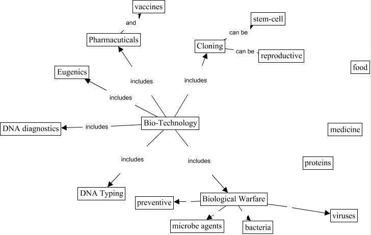 Este Cmap, tiene información relacionada con: BGH, Bio-Technology includes DNA Typing, Pharmacuticals and vaccines, Biological Warfare viruses, Bio-Technology includes DNA diagnostics, Biological Warfare bacteria, Biological Warfare preventive, Bio-Technology includes Biological Warfare, Bio-Technology includes Pharmacuticals, Cloning can be reproductive, Cloning can be stem-cell, Biological Warfare microbe agents, Bio-Technology includes Eugenics, Bio-Technology includes Cloning