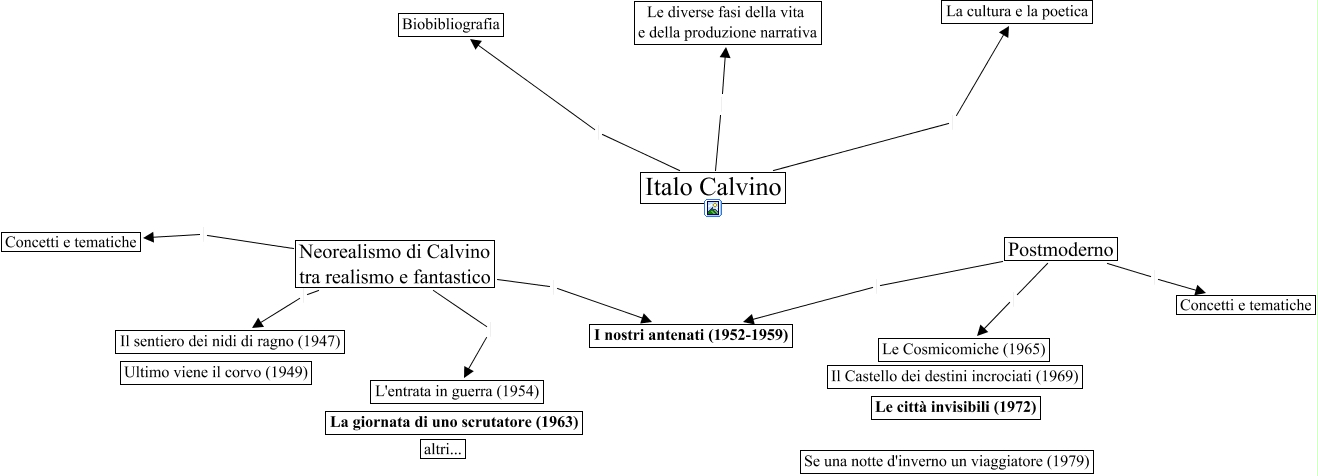 This Concept Map, created with IHMC CmapTools, has information related to: Calvino, Postmoderno Concetti e tematiche, Postmoderno I nostri antenati (1952-1959), Neorealismo di Calvino tra realismo e fantastico Concetti e tematiche, Neorealismo di Calvino tra realismo e fantastico Il sentiero dei nidi di ragno (1947), Neorealismo di Calvino tra realismo e fantastico L'entrata in guerra (1954), Italo Calvino Le diverse fasi della vita e della produzione narrativa, Italo Calvino Biobibliografia, Italo Calvino La cultura e la poetica, Postmoderno Le Cosmicomiche (1965), Neorealismo di Calvino tra realismo e fantastico I nostri antenati (1952-1959)