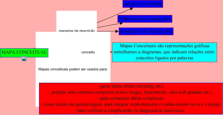 Este Cmap, tiene información relacionada con: denise, MAPA CONCEITUAL maneiras de descrição perspectiva de visualização, MAPA CONCEITUAL conceito Mapas Conceituais são representações gráficas semelhantes a diagramas, que indicam relações entre conceitos ligados por palavras, MAPA CONCEITUAL maneiras de descrição perspectiva de visualização, MAPA CONCEITUAL maneiras de descrição perspectiva abstrata, MAPA CONCEITUAL Mapas conceituais podem ser usados para: - gerar idéias (brain storming, etc) - projetar uma estrutura complexa (textos longos, hypermedia, sites web grandes etc.) - para comunicar idéias complexas - como auxílio na aprendizagem, para integrar explicitamente o conhecimento novo e o antigo - para verificar a compleensão ou diagnosticar equívocos..