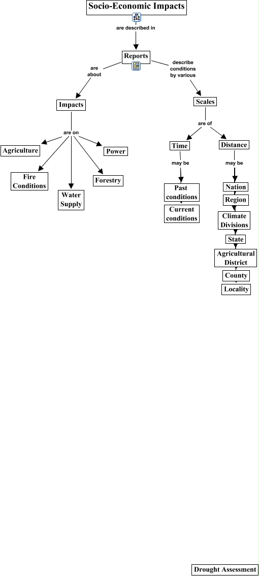 This Concept Map, created with IHMC CmapTools, has information related to: Socio-economic Impact, Time may be Current conditions, Reports are about Impacts, Scales are of Time, Impacts are on Forestry, Distance may be Climate Divisions, Reports describe conditions by various Scales, Time may be Past conditions, Impacts are on Power, Scales are of Distance, Distance may be Agricultural District, Distance may be Region, Impacts are on Fire Conditions, Distance may be State, Impacts are on Agriculture, Distance may be Locality, Socio-Economic Impacts are described in Reports, Impacts are on Water Supply, Distance may be Nation, Distance may be County