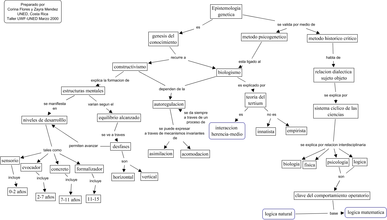 Este Cmap, tiene información relacionada con: Epistemologia genetica, sistema ciclico de las ciencias se explica por relacion interdisciplinaria psicologia, logica natural base logica matematica, Epistemologia genetica se valida por medio de metodo historico critico, equilibrio alcanzado se ve a traves desfases, metodo historico critico habla de relacion dialectica sujeto objeto, estructuras mentales varian segun el equilibrio alcanzado, sistema ciclico de las ciencias se explica por relacion interdisciplinaria fisica, niveles de desarrolllo tales como sensorio, desfases permiten avanzar niveles de desarrolllo, biologismo dependen de la autoregulacion, biologismo es explicado por teoria del tertium, metodo psicogenetico esta ligado al biologismo, estructuras mentales se manifiesta en niveles de desarrolllo, teoria del tertium no es empirista, interaccion herencia-medio se da siempre a traves de un proceso de autoregulacion, teoria del tertium es interaccion herencia-medio, genesis del conocimiento recurre a constructivismo, autoregulacion se puede expresar a traves de mecanismos invariantes de acomodacion, formalizador incluye 11-15, autoregulacion se puede expresar a traves de mecanismos invariantes de asimilacion