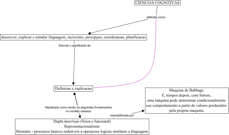 This Concept Map, created with IHMC CmapTools, has information related to: HODARA_CONICAO_I, CIENCIAS COGNITIVAS definida como descrever, explicar e simular linguagem, raciocinio, percepçao, coordenacao, planificacao, Definicao e explicacao Hipotizado como tendo os seguintes fundamentos no modelo classico Dupla descricao (fisica e funcional) Representacionalismo Mentales - processos basicos redutiveis a operacoes logicas similares a linguagem, Definicao e explicacao Hipotizado como tendo os seguintes fundamentos no modelo classico Dupla descricao (fisica e funcional) Representacionalismo Mentales - processos basicos redutiveis a operacoes logicas similares a linguagem, descrever, explicar e simular linguagem, raciocinio, percepçao, coordenacao, planificacao Discute o significado de Definicao e explicacao, Dupla descricao (fisica e funcional) Representacionalismo Mentales - processos basicos redutiveis a operacoes logicas similares a linguagem exemplificada por Maquina de Babbage. E, tempos depois, com Simon, uma máquina pode determinar condicionalmente seu comportamento a partir de valores produzidos pela propria maquina., Definicao e explicacao definida como descrever, explicar e simular linguagem, raciocinio, percepçao, coordenacao, planificacao, Definicao e explicacao Hipotizado como tendo os seguintes fundamentos no modelo classico Dupla descricao (fisica e funcional) Representacionalismo Mentales - processos basicos redutiveis a operacoes logicas similares a linguagem