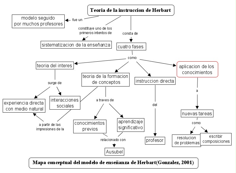 This Concept Map, created with IHMC CmapTools, has information related to: Herbart, teoria del interes surge de experiencia directa con medio natural, cuatro fases como teoria de la formacion de conceptos, teoria de la formacion de conceptos a traves de aprendizaje significativo, Teoria de la instruccion de Herbart constituye uno de los primeros intentos de sistematizacion de la enseñanza, cuatro fases como teoria del interes, nuevas tareas como resolucion de problemas, cuatro fases como instruccion directa, cuatro fases como aplicacion de los conocimientos, teoria de la formacion de conceptos a traves de conocimientos previos, nuevas tareas como escribir composiciones, aplicacion de los conocimientos a nuevas tareas, conocimientos previos relacionado con Ausubel, instruccion directa del profesor, teoria de la formacion de conceptos a partir de las impresiones de la experiencia directa con medio natural, aprendizaje significativo relacionado con Ausubel, Teoria de la instruccion de Herbart consta de cuatro fases, teoria del interes surge de interacciones sociales, Teoria de la instruccion de Herbart fue un modelo seguido por muchos profesores