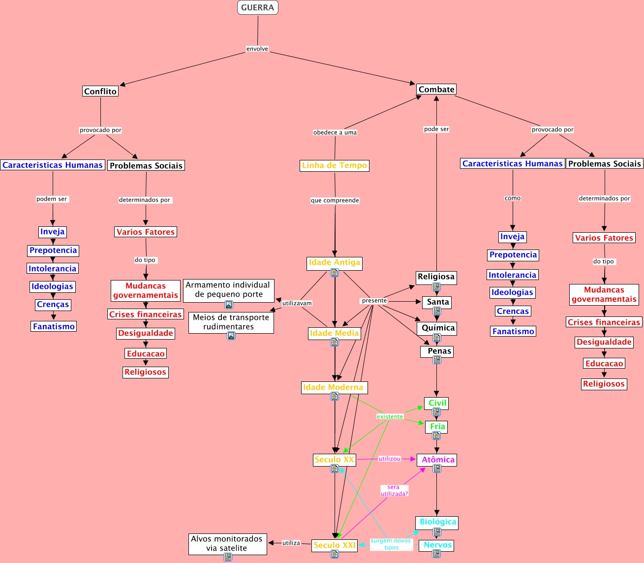 Este Cmap, tiene información relacionada con: GuerraVI, Linha de Tempo que compreende Seculo XX, Linha de Tempo que compreende Idade Antiga, Linha de Tempo obedece a uma Combate, Seculo XXI utiliza Alvos monitorados via satelite, Idade Media utilizavam Armamento individual de pequeno porte, Idade Moderna existente Seculo XX, Varios Fatores do tipo Desigualdade, Seculo XXI sera utilizada? Atômica, Varios Fatores do tipo Educacao, Varios Fatores do tipo Religiosos, Caracteristicas Humanas como Prepotencia, Idade Moderna existente Fria, Varios Fatores do tipo Crises financeiras, Caracteristicas Humanas podem ser Ideologias, Religiosa pode ser Fria, Idade Moderna existente Civil, Religiosa pode ser Combate, Combate provocado por Caracteristicas Humanas, Idade Antiga presente Química, Religiosa pode ser Civil