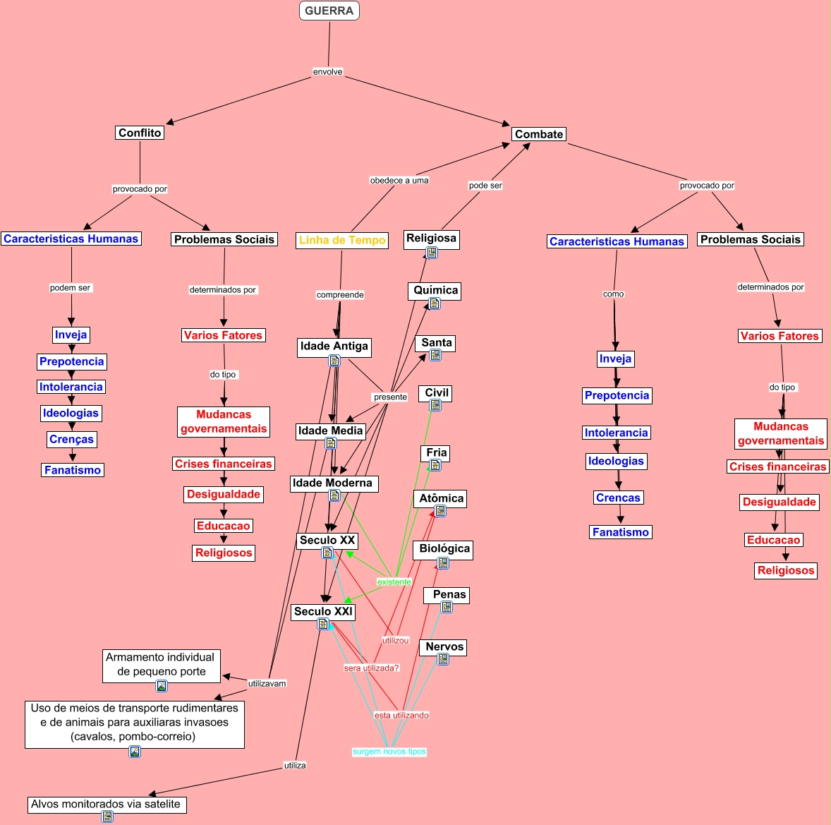 Esse mapa conceitual, produzido no IHMC CmapTools, tem a informação relacionada a: GuerraV, Caracteristicas Humanas podem ser Ideologias, Idade Antiga presente Seculo XX, Seculo XXI esta utilizando Biológica, Varios Fatores do tipo Educacao, Combate provocado por Problemas Sociais, Caracteristicas Humanas como Prepotencia, Idade Antiga presente Idade Media, Conflito provocado por Problemas Sociais, Varios Fatores do tipo Crises financeiras, Caracteristicas Humanas podem ser Intolerancia, Idade Moderna existente Seculo XXI, Nervos surgem novos tipos Seculo XX, Idade Antiga presente Idade Moderna, Caracteristicas Humanas podem ser Fanatismo, Linha de Tempo compreende Idade Media, Linha de Tempo compreende Idade Antiga, Problemas Sociais determinados por Varios Fatores, Varios Fatores do tipo Mudancas governamentais, Idade Antiga presente Química, GUERRA envolve Conflito