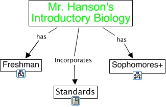 This Concept Map, created with IHMC CmapTools, has information related to: Course Outline, Mr. Hanson's Introductory Biology Incorporates Standards, Mr. Hanson's Introductory Biology has Freshman, Mr. Hanson's Introductory Biology has Sophomores+, Mr. Hanson's Introductory Biology has Freshman