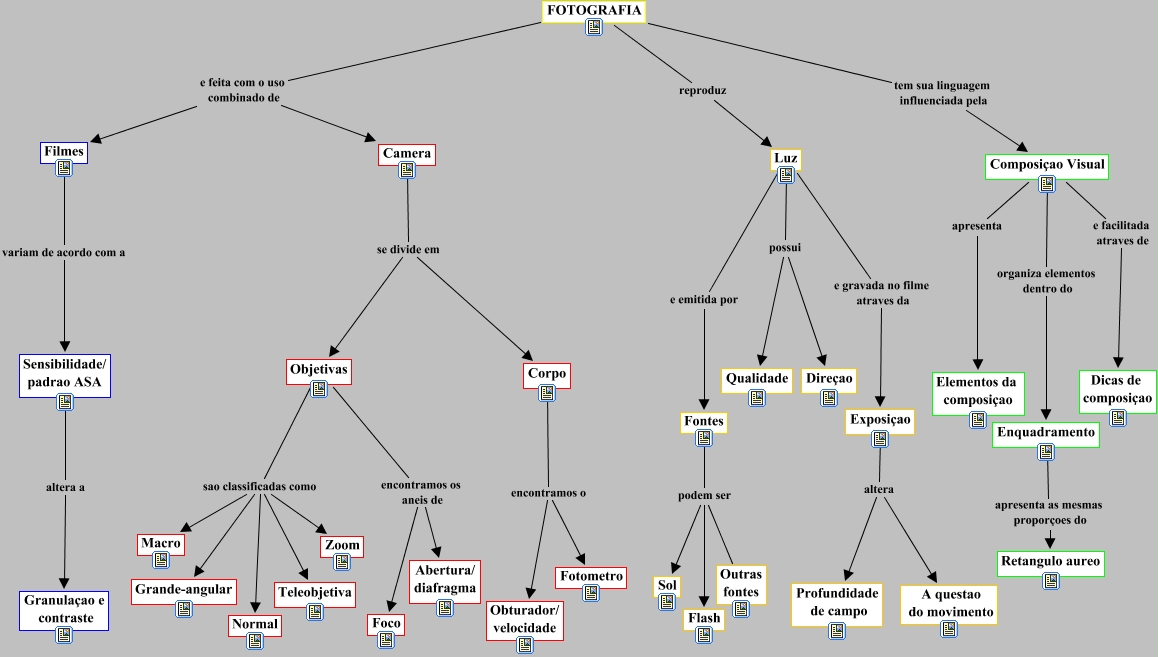 Esse mapa conceitual, produzido no IHMC CmapTools, tem a informação relacionada a: curso foto on, Outras fontes podem ser Sol, Luz e gravada no filme atraves da Exposiçao, FOTOGRAFIA e feita com o uso combinado de Filmes, Corpo encontramos o Obturador/ velocidade, FOTOGRAFIA reproduz Luz, Objetivas sao classificadas como Macro, Filmes variam de acordo com a Sensibilidade/ padrao ASA, Objetivas sao classificadas como Normal, Luz possui Qualidade, Objetivas encontramos os aneis de Foco, Outras fontes podem ser Flash, Fontes podem ser Sol, Objetivas sao classificadas como Zoom, Sensibilidade/ padrao ASA altera a Granulaçao e contraste, Exposiçao altera Profundidade de campo, FOTOGRAFIA tem sua linguagem influenciada pela Composiçao Visual, Composiçao Visual apresenta Elementos da composiçao, Luz e emitida por Fontes, Luz possui Direçao, Enquadramento apresenta as mesmas proporçoes do Retangulo aureo