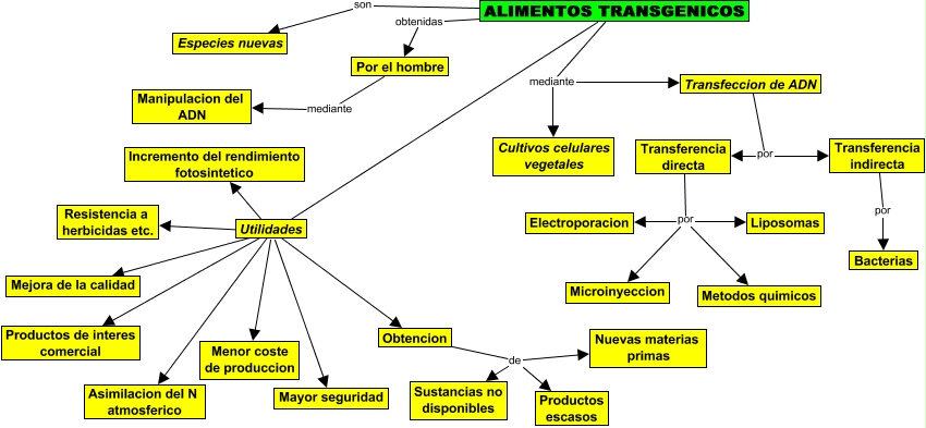 Este Cmap, tiene información relacionada con: ALIMENTOS TRANSGENICOS, ALIMENTOS TRANSGENICOS son Especies nuevas, Obtencion de Productos escasos, ALIMENTOS TRANSGENICOS Asimilacion del N atmosferico, ALIMENTOS TRANSGENICOS mediante Cultivos celulares vegetales, Por el hombre mediante Manipulacion del ADN, ALIMENTOS TRANSGENICOS Incremento del rendimiento fotosintetico, ALIMENTOS TRANSGENICOS Productos de interes comercial, Transferencia directa por Liposomas, Obtencion de Sustancias no disponibles, Obtencion de Nuevas materias primas, Transfeccion de ADN por Transferencia indirecta, ALIMENTOS TRANSGENICOS Menor coste de produccion, ALIMENTOS TRANSGENICOS mediante Transfeccion de ADN, Transferencia directa por Microinyeccion, ALIMENTOS TRANSGENICOS obtenidas Por el hombre, Transfeccion de ADN por Transferencia directa, ALIMENTOS TRANSGENICOS Mayor seguridad, Transferencia directa por Electroporacion, Transferencia indirecta por Bacterias, ALIMENTOS TRANSGENICOS Mejora de la calidad