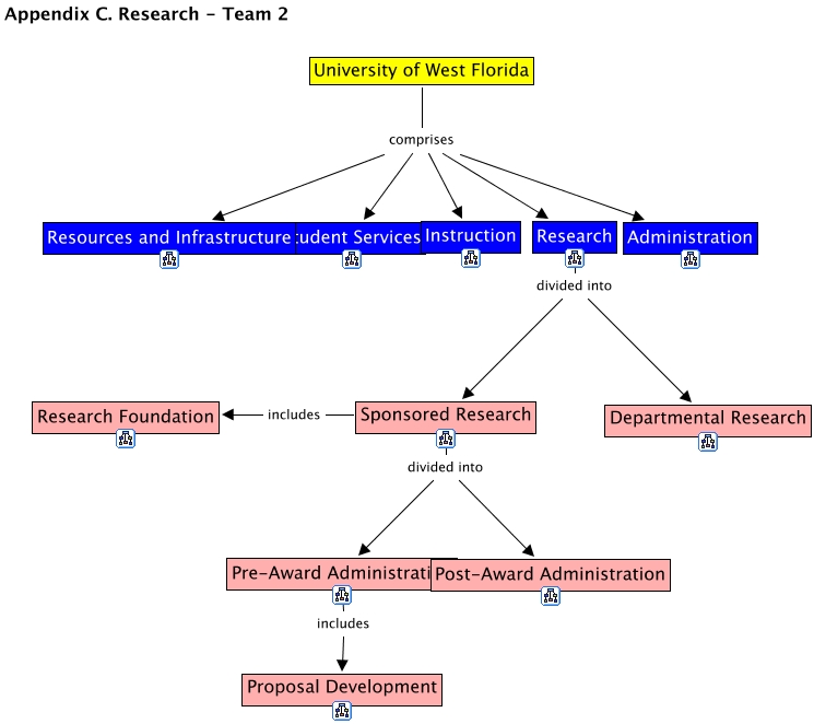 This Concept Map, created with IHMC CmapTools, has information related to: Research Overview, Sponsored Research includes Research Foundation, Pre-Award Administration includes Proposal Development, Sponsored Research divided into Post-Award Administration, University of West Florida comprises Student Services, University of West Florida comprises Administration, Research divided into Sponsored Research, University of West Florida comprises Instruction, Research divided into Departmental Research, Sponsored Research divided into Pre-Award Administration, University of West Florida comprises Research, University of West Florida comprises Resources and Infrastructure