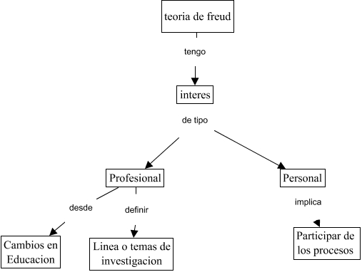 Este Cmap, tiene información relacionada con: Prueba, interes de tipo Personal, interes de tipo Profesional, Profesional desde Cambios en Educacion, Profesional definir Linea o temas de investigacion, teoria de freud tengo interes, Personal implica Participar de los procesos