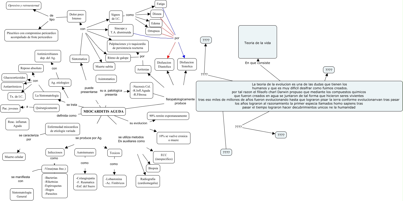 Este Cmap, tiene información relacionada con: Miocarditis, MIOCARDITIS AGUDA se trata La Sintomatologia, Fatiga por Disfuncion Diastolica, La teoria de la evolucion es una de las dudas que tienen los humanos y que es muy dificil desifrar como fuimos creados. por tal razon el filisofo charl Darwin propuso que mediante los compuestos quimicos que fueron creados en agua se juntaron de tal forma que hicieron seres vivientes tras eso miles de millones de años fueron evolucionando hasta que lograron pisar la ierra conforme evolucionanvan tras pasar los años lograron al razonamiento la primer especia llamados homo sapiens tras pasar el tiempo lograron hacer decubrimientos unicos ne la humanidad ???? ????, Sintomatica con Ritmo de galope, MIOCARDITIS AGUDA fisiopatologicamente produce Arritmias, Dolor poco Intenso de tipo Pleuritico con compromiso pericardico acompañado de frote pericardico, Signos de I.C. como Disnea, Ritmo de galope por Palpitaciones y/o taquicardia de persistencia nocturna, MIOCARDITIS AGUDA se produce por Ag. Toxicos, MIOCARDITIS AGUDA fisiopatologicamente produce Disfuncion Diastolica, Enfermedad miocardica de etiologia variada se caracteriza por Reac. inflamat. Aguda, Enfermedad miocardica de etiologia variada se caracteriza por Muerte celular, La teoria de la evolucion es una de las dudas que tienen los humanos y que es muy dificil desifrar como fuimos creados. por tal razon el filisofo charl Darwin propuso que mediante los compuestos quimicos que fueron creados en agua se juntaron de tal forma que hicieron seres vivientes tras eso miles de millones de años fueron evolucionando hasta que lograron pisar la ierra conforme evolucionanvan tras pasar los años lograron al razonamiento la primer especia llamados homo sapiens tras pasar el tiempo lograron hacer decubrimientos unicos ne la humanidad ???? ????, Disnea por Disfuncion Diastolica, MIOCARDITIS AGUDA se produce por Ag. Autoinmunes, La Sintomatologia con Glucocorticoides, MIOCARDITIS AGUDA definida como Enfermedad miocardica de etiologia variada, La Sintomatologia con Tx. de I.C., -Virus(mas frec.) se manifiesta con Sintomatologia General, Autoinmunes como -Colangiopatia -F. Reumatica -Enf. del Suero