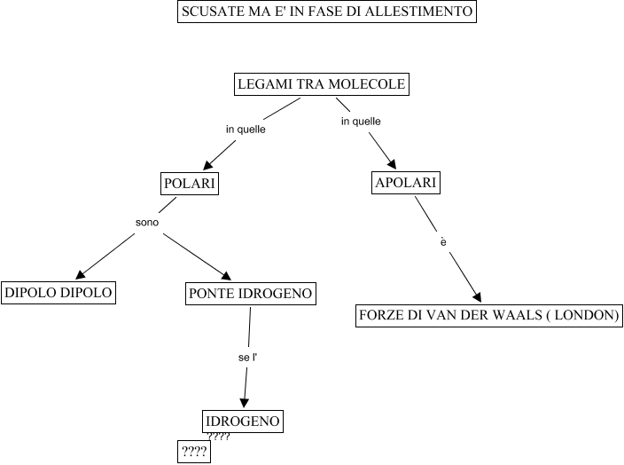 This Concept Map, created with IHMC CmapTools, has information related to: malerba, APOLARI è FORZE DI VAN DER WAALS ( LONDON), POLARI sono DIPOLO DIPOLO, LEGAMI TRA MOLECOLE in quelle APOLARI, PONTE IDROGENO se l' IDROGENO, IDROGENO ???? ????, LEGAMI TRA MOLECOLE in quelle POLARI, POLARI sono PONTE IDROGENO