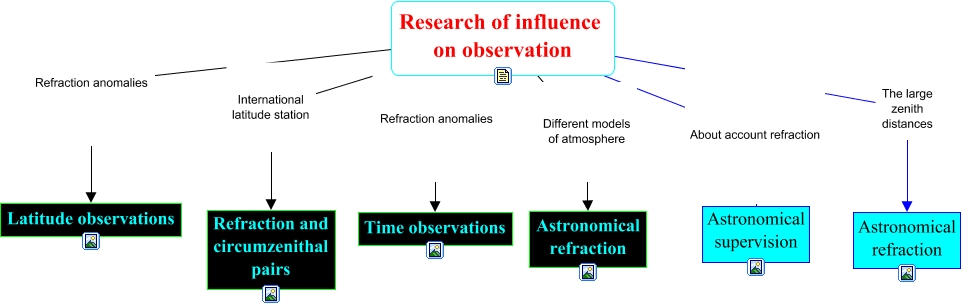 Este Cmap, tiene información relacionada con: Ref-obser, Research of influence on observation Refraction anomalies Latitude observations, Research of influence on observation International latitude station Refraction and circumzenithal pairs, Research of influence on observation Different models of atmosphere Astronomical refraction, Research of influence on observation About account refraction Astronomical supervision, Research of influence on observation Refraction anomalies Time observations, Research of influence on observation The large zenith distances Astronomical refraction