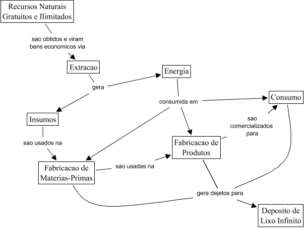 This Concept Map, created with IHMC CmapTools, has information related to: VelhoParadigma, Fabricacao de Produtos gera dejetos para Deposito de Lixo Infinito, Energia consumida em Fabricacao de Materias-Primas, Consumo gera dejetos para Deposito de Lixo Infinito, Fabricacao de Produtos gera dejetos para Deposito de Lixo Infinito, Extracao gera Energia, Extracao gera Insumos, Recursos Naturais Gratuitos e Ilimitados sao obtidos e viram bens economicos via Extracao, Insumos sao usados na Fabricacao de Materias-Primas, Energia consumida em Fabricacao de Produtos, Fabricacao de Produtos sao comercializados para Consumo, Fabricacao de Materias-Primas sao usadas na Fabricacao de Produtos, Fabricacao de Materias-Primas gera dejetos para Deposito de Lixo Infinito, Energia consumida em Consumo