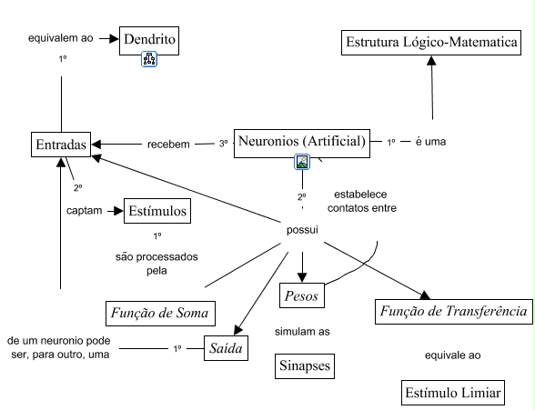 Esse mapa conceitual, produzido no IHMC CmapTools, tem a informação relacionada a: Neuronio_Artificial, Neuronios (Artificial) possui Função de Transferência, Entradas equivalem ao Dendrito, Neuronios (Artificial) recebem Entradas, Pesos simulam as Sinapses, Neuronios (Artificial) possui Saída, Neuronios (Artificial) é uma Estrutura Lógico-Matematica, Pesos estabelece contatos entre Neuronios (Artificial), Saída de um neuronio pode ser, para outro, uma Entradas, Neuronios (Artificial) possui Entradas, Função de Transferência equivale ao Estímulo Limiar, Neuronios (Artificial) possui Pesos, Estímulos são processados pela Função de Soma, Entradas captam Estímulos, Neuronios (Artificial) possui Função de Soma