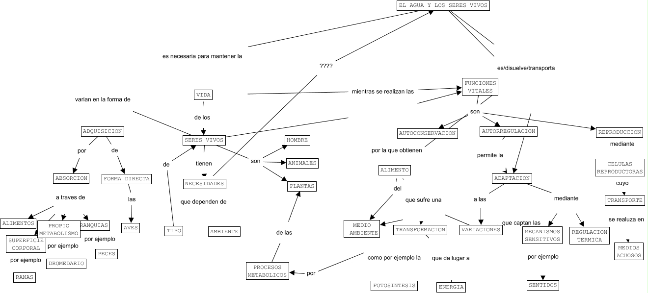 Esse mapa conceitual, produzido no IHMC CmapTools, tem a informação relacionada a: SERESVIVOS, ADQUISICION de FORMA DIRECTA, ADAPTACION mediante MECANISMOS SENSITIVOS, SERES VIVOS tienen NECESIDADES, AUTORREGULACION permite la ADAPTACION, SERES VIVOS varian en la forma de ADQUISICION, MECANISMOS SENSITIVOS que captan las VARIACIONES, ADAPTACION a las VARIACIONES, VIDA mientras se realizan las FUNCIONES VITALES, SERES VIVOS son HOMBRE, TIPO de SERES VIVOS, ABSORCION a traves de ALIMENTOS, SERES VIVOS tienen FUNCIONES VITALES, TRANSFORMACION que da lugar a ENERGIA, MECANISMOS SENSITIVOS por ejemplo SENTIDOS, ADAPTACION mediante REGULACION TERMICA, AUTOCONSERVACION por la que obtienen ALIMENTO, TRANSFORMACION por PROCESOS METABOLICOS, SUPERFICIE CORPORAL por ejemplo RANAS, EL AGUA Y LOS SERES VIVOS permite la ADAPTACION, EL AGUA Y LOS SERES VIVOS es/disuelve/transporta ALIMENTO