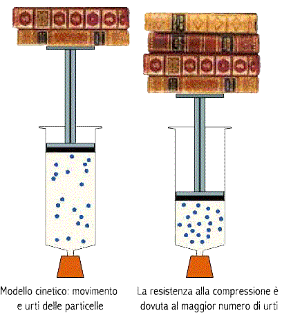 Riflessione dopo 1° giorno, Perché l'aria resiste alla compressione? in base al modello particellare, modello particellare che va arricchito con una ipotesi, ipotesi per es. repulsione tra le particelle, repulsione tra le particelle obiezioni 1. se le particelle si respingono dovrebbero distanziarsi e lasciare un vuoto al centro 2. due palloncini pieni d'aria dovrebbero respingersi, ipotesi da testare con esperimenti, particelle sarebbero separate da spazi vuoti, Per comprimere l'aria in una siringa occorre uno sforzo. Inoltre l'aria non rimane compressa se la si lascia libera. Dunque Perché l'aria resiste alla compressione?, modello particellare le sue particelle, resistenza può essere spiegata con diverse possibili ipotesi, ipotesi per es. elasticità e comprimibilità delle particelle