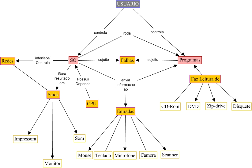 Sistemas Operacionais, Entradas Mouse, SO envia informacao ao Programas, Saida Impressora, Programas sujeito Falhas, Entradas Scanner, Saida Monitor, Saida Som, Camera Entradas, Entradas Microfone, CD-Rom Faz Leitura de
