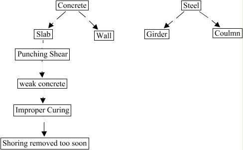 This Concept Map, created with IHMC CmapTools, has information related to: material, Improper Curing Shoring removed too soon, Concrete Slab, weak concrete Improper Curing, Punching Shear weak concrete, Steel Coulmn, Slab Punching Shear, Concrete Wall, Steel Girder