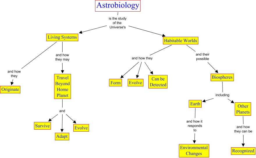This Concept Map, created with IHMC CmapTools, has information related to: Astrobiology, Earth and how it responds to Environmental Changes, Habitable Worlds and their possible Biospheres, Other Planets and how they can be Recognized, Astrobiology is the study of the Universe's Living Systems, Astrobiology is the study of the Universe's Habitable Worlds, Habitable Worlds and how they Form, Biospheres including Other Planets, Travel Beyond Home Planet and Survive, Biospheres including Earth, Living Systems and how they Originate, Habitable Worlds and how they Evolve, Habitable Worlds and how they Can be Detected, Living Systems and how they may Travel Beyond Home Planet, Travel Beyond Home Planet and Evolve, Travel Beyond Home Planet and Adapt