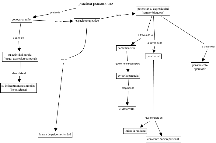 This Concept Map, created with IHMC CmapTools, has information related to: practica psicomotriz, espacio terapeutico para potenciar su expresividad (romper bloqueos), creatividad que consiste en imitar la realidad, evitar la carencia propiciando el desarrollo, su actividad motriz (juego, expresion corporal) descubriendo su infraestructura simbolica (inconsciente), creatividad que consiste en con contribucion personal, potenciar su expresividad (romper bloqueos) a traves del pensamiento operatorio, conocer al niño a partir de su actividad motriz (juego, expresion corporal), potenciar su expresividad (romper bloqueos) a traves de la creatividad, practica psicomotriz pretende conocer al niño, espacio terapeutico que es la sala de psicomotricidad, conocer al niño en un espacio terapeutico, comunicacion que el niño busca para evitar la carencia, potenciar su expresividad (romper bloqueos) a traves de la comunicacion