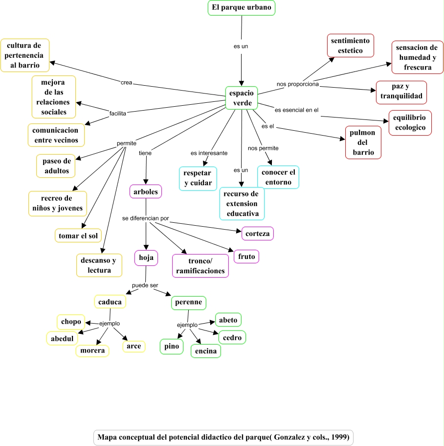 Este Cmap, tiene información relacionada con: vaguada, El parque urbano es un espacio verde, hoja puede ser caduca, espacio verde tiene arboles, hoja puede ser perenne, perenne ejemplo encina, espacio verde facilita comunicacion entre vecinos, espacio verde permite tomar el sol, espacio verde permite descanso y lectura, perenne ejemplo cedro, espacio verde es esencial en el equilibrio ecologico, espacio verde crea cultura de pertenencia al barrio, caduca ejemplo arce, espacio verde permite paseo de adultos, caduca ejemplo abedul, perenne ejemplo pino, espacio verde nos proporciona sensacion de humedad y frescura, espacio verde nos proporciona sentimiento estetico, espacio verde es interesante respetar y cuidar, espacio verde es el pulmon del barrio, arboles se diferencian por tronco/ ramificaciones