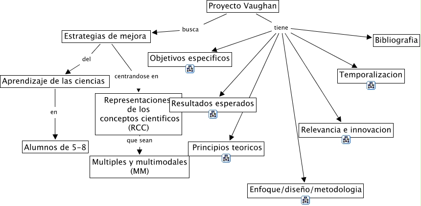This Concept Map, created with IHMC CmapTools, has information related to: Vaughanproject, Estrategias de mejora centrandose en Representaciones de los conceptos cientificos (RCC), Proyecto Vaughan tiene Bibliografia, Proyecto Vaughan tiene Principios teoricos, Proyecto Vaughan busca Estrategias de mejora, Representaciones de los conceptos cientificos (RCC) que sean Multiples y multimodales (MM), Estrategias de mejora del Aprendizaje de las ciencias, Aprendizaje de las ciencias en Alumnos de 5-8, Proyecto Vaughan tiene Enfoque/diseño/metodologia, Proyecto Vaughan tiene Temporalizacion, Proyecto Vaughan tiene Objetivos especificos, Proyecto Vaughan tiene Resultados esperados, Proyecto Vaughan tiene Relevancia e innovacion