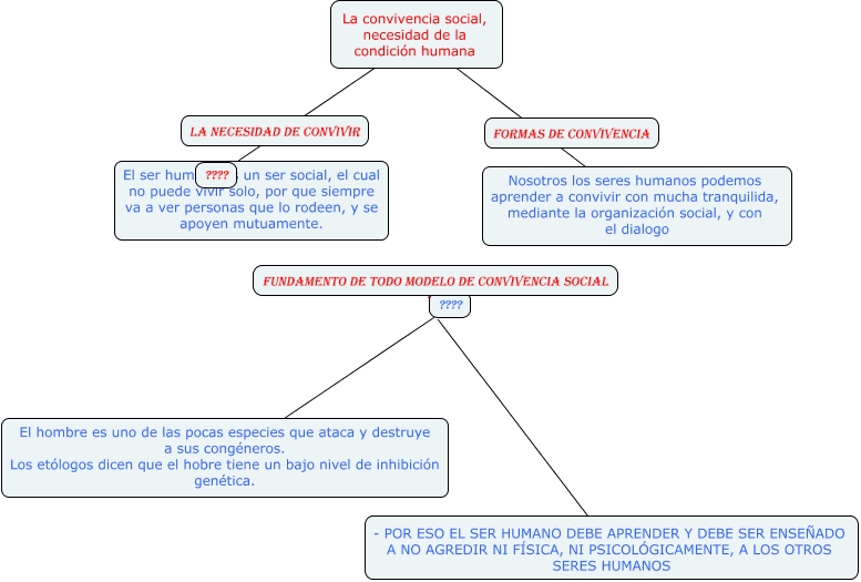 Este Cmap, tiene información relacionada con: Biology Map 1, La convivencia social, necesidad de la condición humana ???? ????, fUNDAMENTO DE TODO MODELO DE CONVIVENCIA SOCIAL ???? ????, - POR ESO EL SER HUMANO DEBE APRENDER Y DEBE SER ENSEÑADO A NO AGREDIR NI FÍSICA, NI PSICOLÓGICAMENTE, A LOS OTROS SERES HUMANOS El hombre es uno de las pocas especies que ataca y destruye a sus congéneros. Los etólogos dicen que el hobre tiene un bajo nivel de inhibición genética., La convivencia social, necesidad de la condición humana ???? Nosotros los seres humanos podemos aprender a convivir con mucha tranquilida, mediante la organización social, y con el dialogo, - POR ESO EL SER HUMANO DEBE APRENDER Y DEBE SER ENSEÑADO A NO AGREDIR NI FÍSICA, NI PSICOLÓGICAMENTE, A LOS OTROS SERES HUMANOS fUNDAMENTO DE TODO MODELO DE CONVIVENCIA SOCIAL