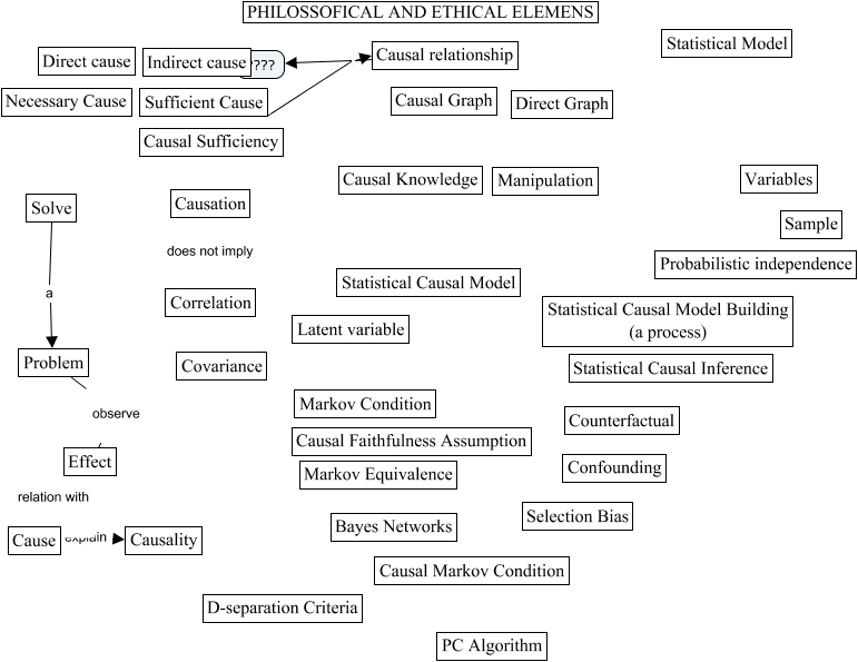 Este Cmap, tiene información relacionada con: Main concepts collaborate, Causal relationship Sufficient Cause, Solve a Problem, Correlation does not imply Causation, Cause explain Causality, Causal relationship ????, Problem observe Effect, Effect relation with Cause