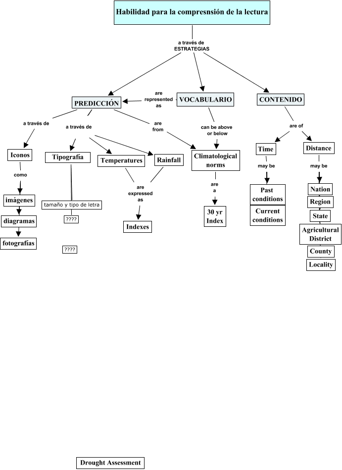 Este Cmap, tiene información relacionada con: Meteorological Assessment, Iconos como fotografías, Climatological norms are a 30 yr Index, Distance may be Nation, VOCABULARIO are represented as PREDICCIÓN, Time may be Current conditions, Habilidad para la compresnsión de la lectura a través de ESTRATEGIAS VOCABULARIO, CONTENIDO are of Distance, Iconos como diagramas, Distance may be County, PREDICCIÓN are from Climatological norms, Distance may be State, PREDICCIÓN a través de Tipografía, PREDICCIÓN are of Rainfall, Habilidad para la compresnsión de la lectura a través de ESTRATEGIAS CONTENIDO, Habilidad para la compresnsión de la lectura a través de ESTRATEGIAS PREDICCIÓN, Iconos como imágenes, PREDICCIÓN are of Temperatures, CONTENIDO are of Time, Distance may be Region, Distance may be Agricultural District
