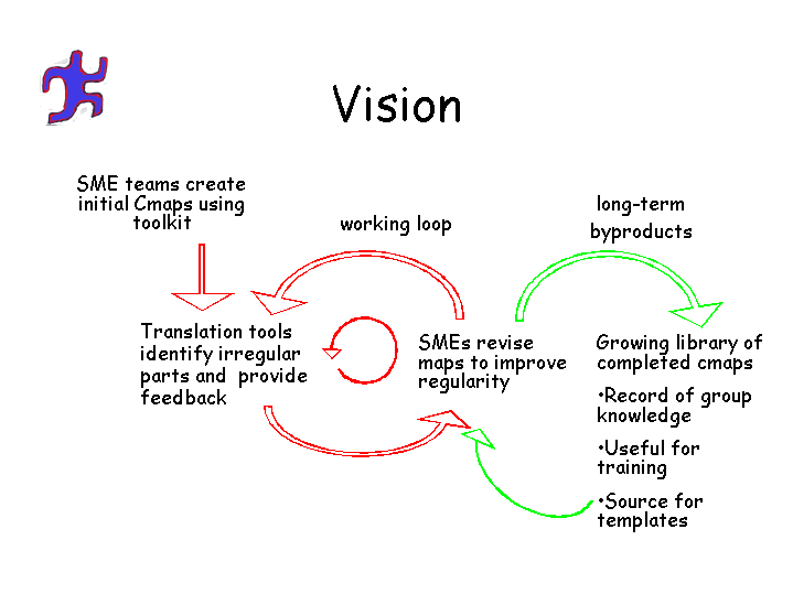 This Concept Map, created with IHMC CmapTools, has information related to: slide 4, graphic feedback using color conventions, pop-up menus of link names which have predefined axiom translations, cut/paste templates all these Will be demonstrated this evening, RKF Cmap toolkit includes pre-typed nodes, color conventions like this, RKF Cmap toolkit includes integration with other input modes, (not implemented yet) comment on Extended graph notation, RKF Cmap toolkit includes graphic feedback, pre-typed nodes all these Will be demonstrated this evening, RKF Cmap toolkit includes SME style guide, this comments on (not implemented yet), RKF Cmap toolkit encourage construction of "Regular" concept maps, predefined axiom translations based on components, RKF Cmap toolkit includes pop-up menus of link names, "Regular" concept maps can be translated into Logic, pop-up menus of link names all these Will be demonstrated this evening, cut/paste templates which have predefined axiom translations, RKF Cmap toolkit includes cut/paste templates, (not implemented yet) comment on graphic feedback, RKF Cmap toolkit includes Extended graph notation