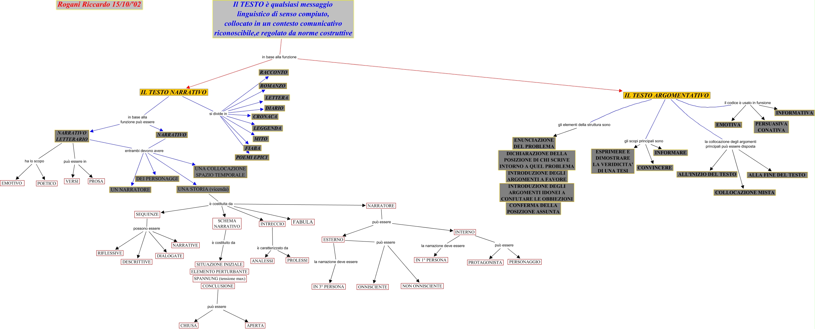 Questa Cmap, creata con IHMC CmapTools, contiene informazioni relative a: Testo narrativo_Rogani, UNA STORIA (vicenda) è costituita da NARRATORE, IL TESTO NARRATIVO si divide in FIABA, CONCLUSIONE può essere CHIUSA, UNA STORIA (vicenda) è costituita da SEQUENZE, NARRATIVO LETTERARIO ha lo scopo POETICO, NARRATIVO LETTERARIO può essere in PROSA, IL TESTO ARGOMENTATIVO la collocazione degli argomenti principali può essere disposta COLLOCAZIONE MISTA, ESTERNO la narrazione deve essere IN 3° PERSONA, IL TESTO ARGOMENTATIVO il codice è usato in funsione PERSUASIVA CONATIVA, IL TESTO NARRATIVO si divide in MITO, IL TESTO ARGOMENTATIVO il codice è usato in funsione EMOTIVA, IL TESTO ARGOMENTATIVO gli scopi principali sono ESPRIMERE E DIMOSTRARE LA VERIDICITA' DI UNA TESI, NARRATIVO entrambi devono avere UNA STORIA (vicenda), IL TESTO NARRATIVO si divide in LETTERA, SEQUENZE possono essere DESCRITTIVE, NARRATORE può essere ESTERNO, INTERNO la narrazione deve essere IN 1° PERSONA, INTERNO può essere PROTAGONISTA, NARRATIVO LETTERARIO può essere in VERSI, SEQUENZE possono essere DIALOGATE