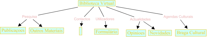 Esse mapa conceitual, produzido no IHMC CmapTools, tem a informação relacionada a: silvia alves, Biblioteca Virtual Contactos, Biblioteca Virtual Actualidades Novidades, Biblioteca Virtual Agendas Culturais Braga Cultural, Biblioteca Virtual Actualidades Opinioes, Biblioteca Virtual Pesquisa Outros Materiais, Biblioteca Virtual Utilizadores Formulário, Biblioteca Virtual Pesquisa Publicaçoes