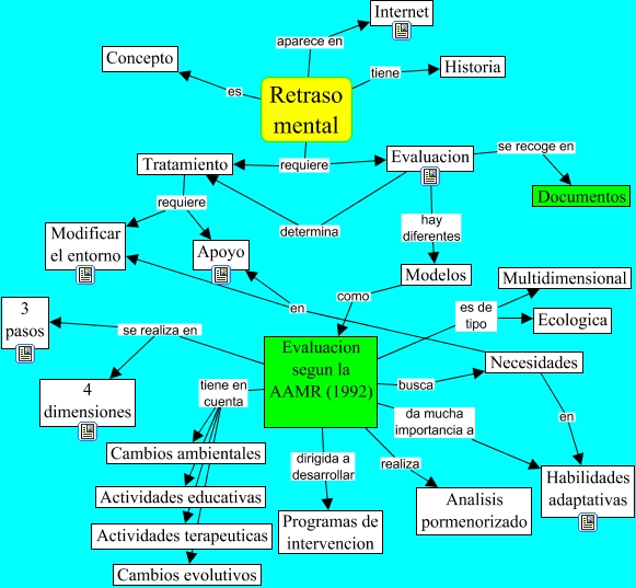 Esse mapa conceitual, produzido no IHMC CmapTools, tem a informação relacionada a: Retraso mental, Necesidades en Modificar el entorno, Evaluacion segun la AAMR (1992) dirigida a desarrollar Programas de intervencion, Necesidades en Apoyo, Retraso mental requiere Evaluacion, Tratamiento requiere Modificar el entorno, Evaluacion segun la AAMR (1992) realiza Analisis pormenorizado, Evaluacion segun la AAMR (1992) es de tipo Multidimensional, Evaluacion segun la AAMR (1992) se realiza en 3 pasos, Evaluacion segun la AAMR (1992) tiene en cuenta Actividades terapeuticas, Evaluacion segun la AAMR (1992) tiene en cuenta Cambios evolutivos, Evaluacion segun la AAMR (1992) es de tipo Ecologica, Evaluacion se recoge en Documentos, Retraso mental aparece en Internet, Evaluacion segun la AAMR (1992) busca Necesidades, Retraso mental es Concepto, Retraso mental tiene Historia, Tratamiento requiere Apoyo, Evaluacion segun la AAMR (1992) da mucha importancia a Habilidades adaptativas, Modelos como Evaluacion segun la AAMR (1992), Evaluacion determina Tratamiento