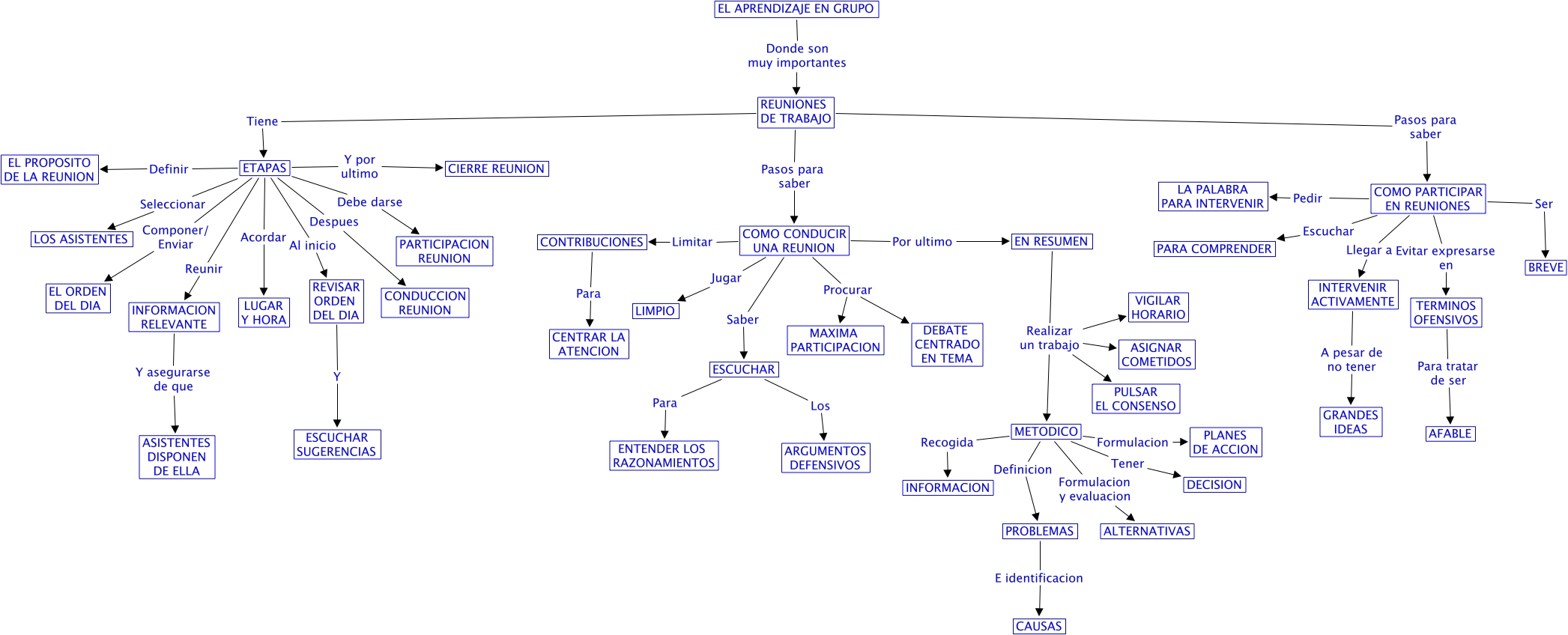 El Aprendizaje en grupo 4, ETAPAS Reunir INFORMACION RELEVANTE, CONTRIBUCIONES Para CENTRAR LA ATENCION, COMO PARTICIPAR EN REUNIONES Evitar expresarse en TERMINOS OFENSIVOS, COMO CONDUCIR UNA REUNION Procurar DEBATE CENTRADO EN TEMA, METODICO Formulacion PLANES DE ACCION, METODICO Tener DECISION, REVISAR ORDEN DEL DIA Y ESCUCHAR SUGERENCIAS, COMO CONDUCIR UNA REUNION Limitar CONTRIBUCIONES, ETAPAS Definir EL PROPOSITO DE LA REUNION, METODICO Definicion PROBLEMAS