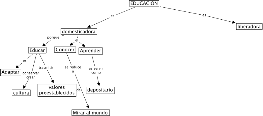 Dos concepciones antagonicas, domesticadora porque Educar, Educar conservar crear cultura, Aprender es servir como depositario, domesticadora el Aprender, Educar es Adaptar, EDUCACION es liberadora, EDUCACION es domesticadora, Educar trasmitir valores preestablecidos, Conocer se reduce a Mirar al mundo, domesticadora el Conocer