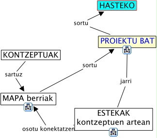 hasteko, ESTEKAK kontzeptuen artean osotu konektatzen MAPA berriak, PROIEKTU BAT sortu HASTEKO, KONTZEPTUAK sartuz MAPA berriak, MAPA berriak sortu PROIEKTU BAT, ESTEKAK kontzeptuen artean jarri PROIEKTU BAT