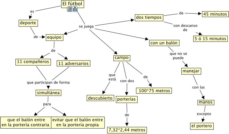 Futbol. Aspectos, simultánea para evitar que el balón entre en la portería propia, campo con dos porterías, campo que está descubierto, equipo de 11 adversarios, El fútbol es deporte, campo de 100*75 metros, El fútbol se juega con un balón, porterías de 7,32*2,44 metros, dos tiempos de 45 minutos, El fútbol se juega campo