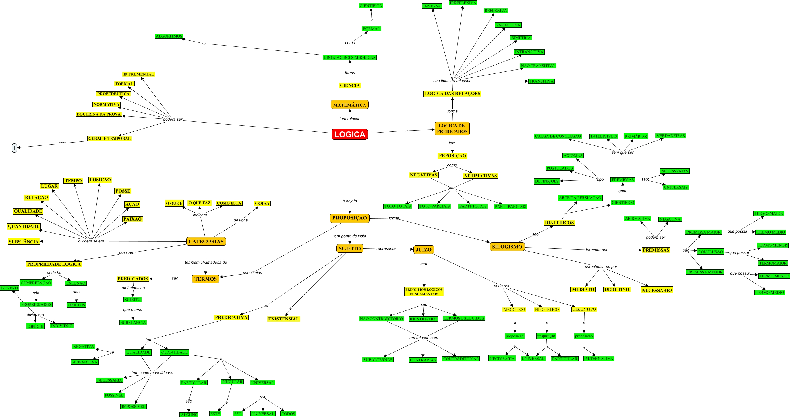Esse mapa conceitual, produzido no IHMC CmapTools, tem a informação relacionada a: Mauricio, SILOGISMO caracteriza-se por MEDIATO, LOGICA poderá ser FORMAL, proposiçao é UNIVERSAL, QUANTIDADE tem como modalidades POSSIVEL, NEGATIVAS sao TOTO-TOTAIS, PROPRIEDADES divido em GENERO, PREMISSAS são PREMISSA MENOR, NAO CONTRADITORIO tem relaçao com CONTRADITORIAS, NEGATIVAS sao PARTI-PARCIAIS, TERMOS EXCLUIDOS tem relaçao com CONTRARIAS, CATEGORIAS tembem chamadosa de TERMOS, CIENTIFICO onde PREMISSAS, DISJUNTIVO a proposiçao, SUJEITO que é uma SUBSTANCIA, PREDICATIVA tem QUALIDADE, CATEGORIAS dividem se em POSIÇAO, PREMISSAS são CONCLUSÃO, LOGICA DAS RELAÇOES sao tipos de relaçoes NAO TRANSITIVA, SILOGISMO sao DIALETICOS, LOGICA DAS RELAÇOES sao tipos de relaçoes INTRANSITIVA
