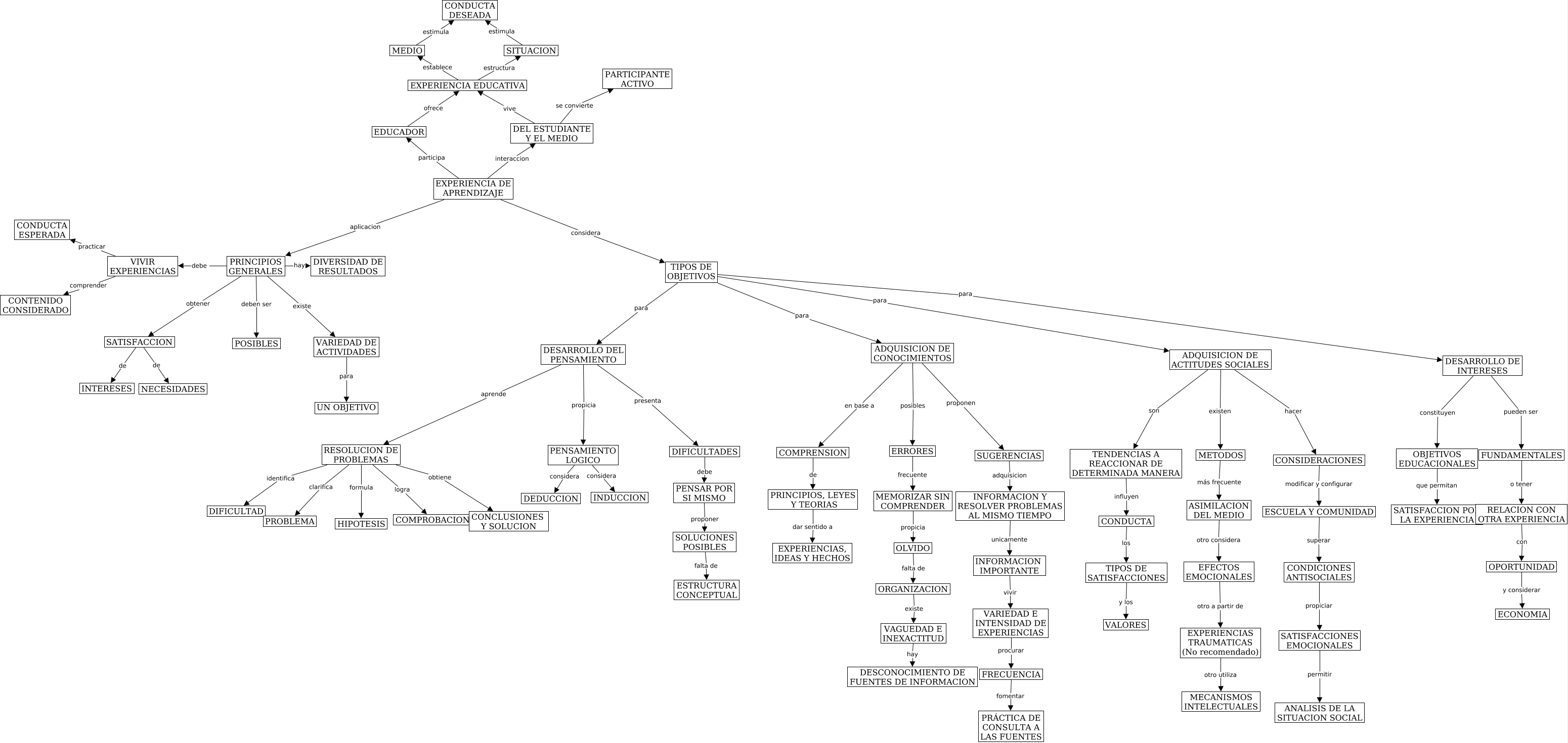 This Concept Map, created with IHMC CmapTools, has information related to: SELECCIONAR ACTIVIDADES1, ADQUISICION DE ACTITUDES SOCIALES existen METODOS, DEL ESTUDIANTE Y EL MEDIO se convierte PARTICIPANTE ACTIVO, PRINCIPIOS GENERALES debe VIVIR EXPERIENCIAS, TIPOS DE OBJETIVOS para DESARROLLO DEL PENSAMIENTO, PRINCIPIOS GENERALES existe VARIEDAD DE ACTIVIDADES, EXPERIENCIA DE APRENDIZAJE interaccion DEL ESTUDIANTE Y EL MEDIO, SATISFACCIONES EMOCIONALES permitir ANALISIS DE LA SITUACION SOCIAL, ADQUISICION DE CONOCIMIENTOS proponen SUGERENCIAS, RESOLUCION DE PROBLEMAS identifica DIFICULTAD, COMPRENSION de PRINCIPIOS, LEYES Y TEORIAS, ADQUISICION DE ACTITUDES SOCIALES hacer CONSIDERACIONES, VIVIR EXPERIENCIAS practicar CONDUCTA ESPERADA, VARIEDAD DE ACTIVIDADES para UN OBJETIVO, ERRORES frecuente MEMORIZAR SIN COMPRENDER, ADQUISICION DE CONOCIMIENTOS en base a COMPRENSION, DEL ESTUDIANTE Y EL MEDIO vive EXPERIENCIA EDUCATIVA, TIPOS DE SATISFACCIONES y los VALORES, PRINCIPIOS GENERALES hay DIVERSIDAD DE RESULTADOS, CONDICIONES ANTISOCIALES propiciar SATISFACCIONES EMOCIONALES, ADQUISICION DE ACTITUDES SOCIALES son TENDENCIAS A REACCIONAR DE DETERMINADA MANERA