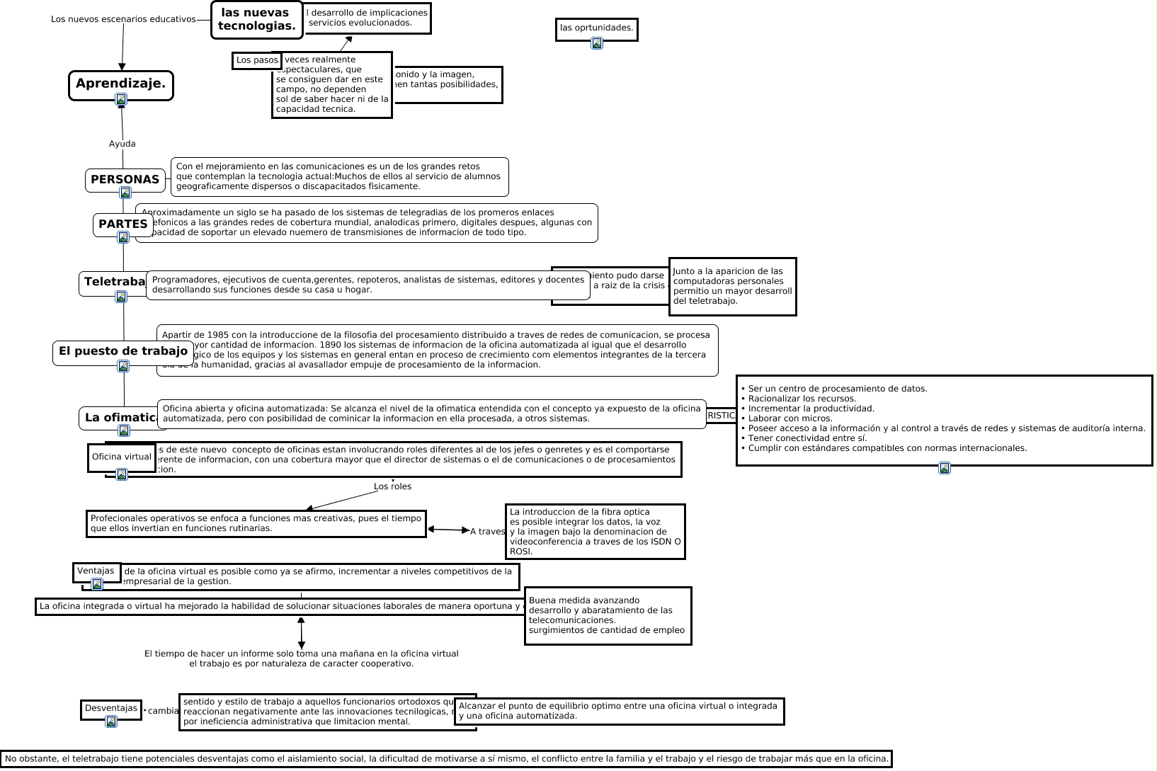 Este Cmap, tiene información relacionada con: le piante, Oficina abierta y oficina automatizada: Se alcanza el nivel de la ofimatica entendida con el concepto ya expuesto de la oficina automatizada, pero con posibilidad de cominicar la informacion en ella procesada, a otros sistemas. ???? CARACTERISTICAS, Profecionales operativos se enfoca a funciones mas creativas, pues el tiempo que ellos invertian en funciones rutinarias. A traves La introduccion de la fibra optica es posible integrar los datos, la voz y la imagen bajo la denominacion de videoconferencia a traves de los ISDN O ROSI., Programadores, ejecutivos de cuenta,gerentes, repoteros, analistas de sistemas, editores y docentes desarrollando sus funciones desde su casa u hogar. ???? El nacimiento pudo darse en 1973 a raiz de la crisis del petrolio., Apartir de 1985 con la introduccione de la filosofia del procesamiento distribuido a traves de redes de comunicacion, se procesa una mayor cantidad de informacion. 1890 los sistemas de informacion de la oficina automatizada al igual que el desarrollo tecnologico de los equipos y los sistemas en general entan en proceso de crecimiento com elementos integrantes de la tercera ola de la humanidad, gracias al avasallador empuje de procesamiento de la informacion. ???? El puesto de trabajo, CARACTERISTICAS ???? • Ser un centro de procesamiento de datos. • Racionalizar los recursos. • Incrementar la productividad. • Laborar con micros. • Poseer acceso a la información y al control a través de redes y sistemas de auditoría interna. • Tener conectividad entre sí. • Cumplir con estándares compatibles con normas internacionales., A veces realmente espectaculares, que se consiguen dar en este campo, no dependen sol de saber hacer ni de la capacidad tecnica. ???? El desarrollo de implicaciones y servicios evolucionados., sentido y estilo de trabajo a aquellos funcionarios ortodoxos que reaccionan negativamente ante las innovaciones tecnilogicas, mas por ineficiencia administrativa que limitacion mental. ???? Alcanzar el punto de equilibrio optimo entre una oficina virtual o integrada y una oficina automatizada., Programadores, ejecutivos de cuenta,gerentes, repoteros, analistas de sistemas, editores y docentes desarrollando sus funciones desde su casa u hogar. ???? Teletrabajo, La ofimatica Ayuda Aprendizaje., Con el mejoramiento en las comunicaciones es un de los grandes retos que contemplan la tecnologia actual:Muchos de ellos al servicio de alumnos geograficamente dispersos o discapacitados fisicamente. ???? PERSONAS, Los gestores de este nuevo concepto de oficinas estan involucrando roles diferentes al de los jefes o genretes y es el comportarse como un gerente de informacion, con una cobertura mayor que el director de sistemas o el de comunicaciones o de procesamientos de informacion. Los roles Profecionales operativos se enfoca a funciones mas creativas, pues el tiempo que ellos invertian en funciones rutinarias., Desventajas cambiar sentido y estilo de trabajo a aquellos funcionarios ortodoxos que reaccionan negativamente ante las innovaciones tecnilogicas, mas por ineficiencia administrativa que limitacion mental., Aproximadamente un siglo se ha pasado de los sistemas de telegradias de los promeros enlaces telefonicos a las grandes redes de cobertura mundial, analodicas primero, digitales despues, algunas con capacidad de soportar un elevado nuemero de transmisiones de informacion de todo tipo. ???? PARTES, Oficina abierta y oficina automatizada: Se alcanza el nivel de la ofimatica entendida con el concepto ya expuesto de la oficina automatizada, pero con posibilidad de cominicar la informacion en ella procesada, a otros sistemas. ???? La ofimatica, las nuevas tecnologias. Los nuevos escenarios educativos Aprendizaje., El nacimiento pudo darse en 1973 a raiz de la crisis del petrolio. ???? Junto a la aparicion de las computadoras personales permitio un mayor desarroll del teletrabajo., A traves de la oficina virtual es posible como ya se afirmo, incrementar a niveles competitivos de la funcion empresarial de la gestion. El tiempo de hacer un informe solo toma una mañana en la oficina virtual el trabajo es por naturaleza de caracter cooperativo. La oficina integrada o virtual ha mejorado la habilidad de solucionar situaciones laborales de manera oportuna y eficiente.
