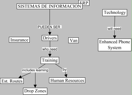 Este Cmap, tiene información relacionada con: Woody's DD Service, Drivers who need Training, Technology will need Enhanced Phone System, Training includes learning Drop Zones, Training includes learning Est. Routes, Training by Human Resources, SISTEMAS DE INFORMACION PUEDEN SER Drivers
